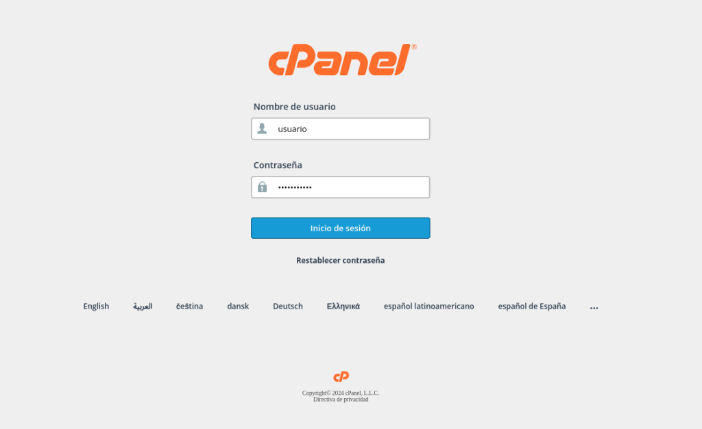 - Inicia sesión en cPanel utilizando el enlace proporcionado por nosotors.
