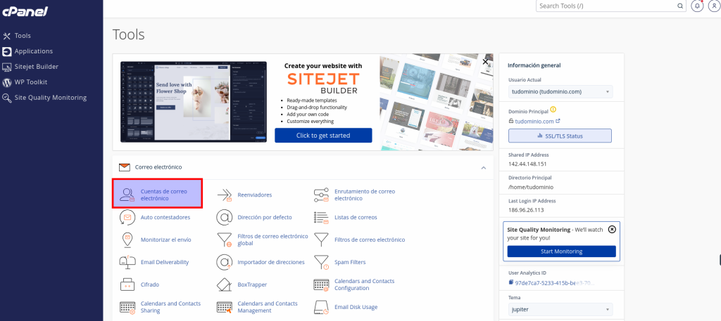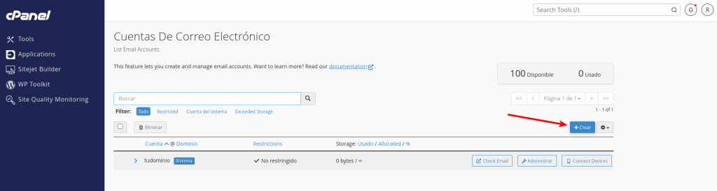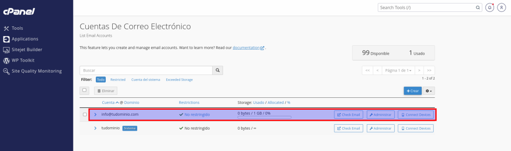 Administrar mis cuentas de correo en cPanel