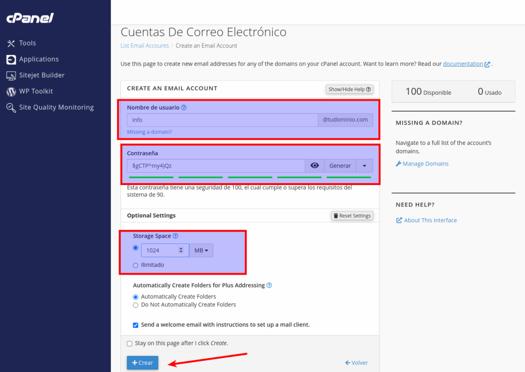 - Haz clic en “Crear” para finalizar la creación de la cuenta.
